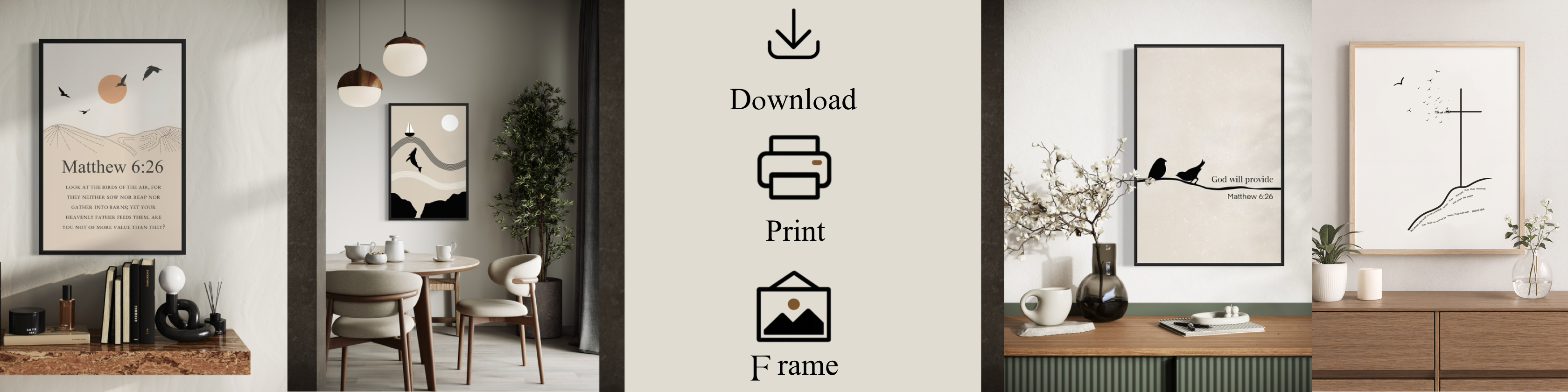 Each print is designed to bring peace, Scripture, and timeless beauty into your space.